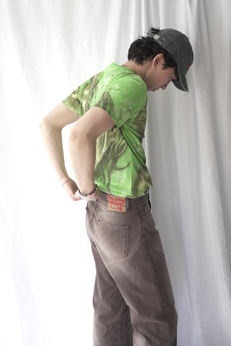 ウエスト(平置してウエストの円周を計測) 股上(トップボタン上から股の縫い目まで) 股上後ろ(後ろ一番上から股の縫い目まで) 股下(またの縫い目から裾まで) もも幅((股下付けね部分のもも幅直線を計測) 裾幅(裾口部分片側を計測)