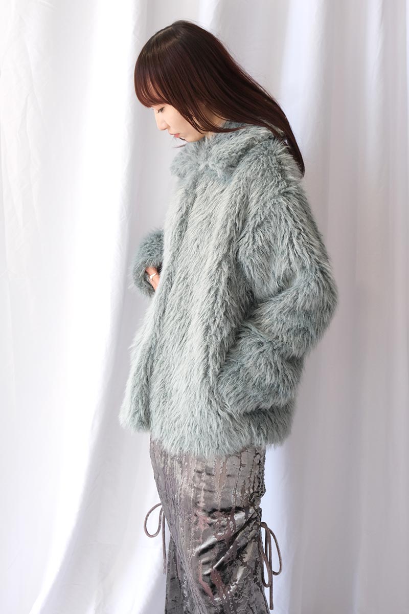 ECO FUR SNAP FRONT JACKET / SAX BLUE