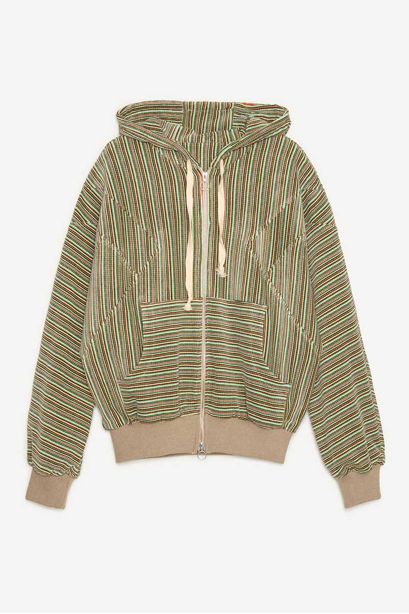 • レジメンタル調のストライプパターンが遊びの効いたジップフーディー。