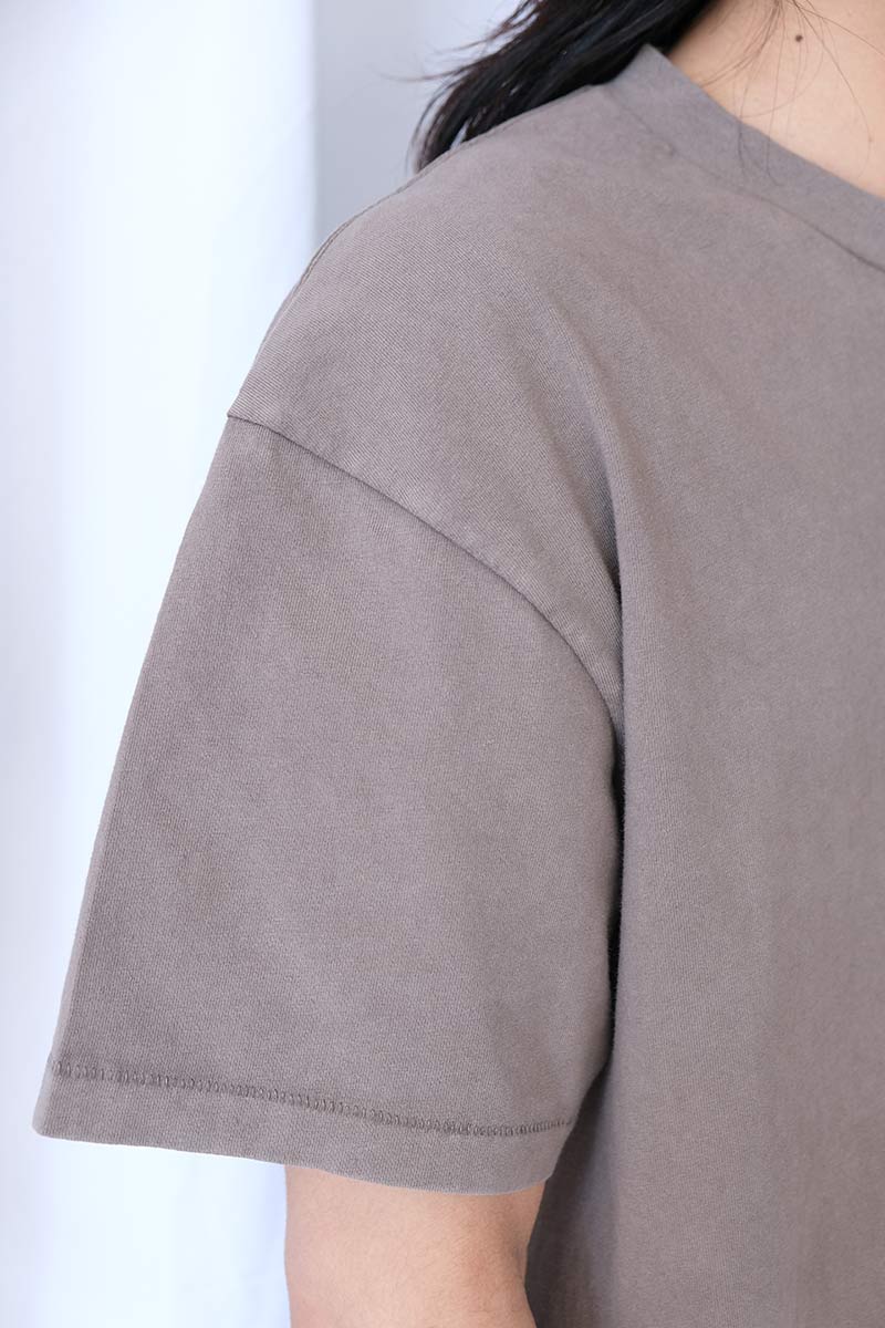 • 程よく詰まったクルーネック、着丈の短いコンパクトなボックスシルエット。