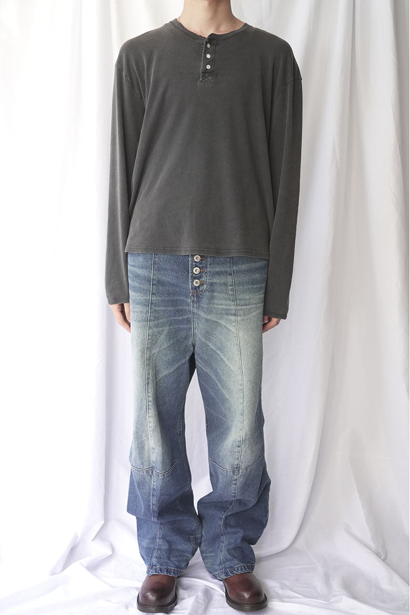 • ウォッシュ加工による風合いのある生地感が魅力のヘンリーネックカットソー。
