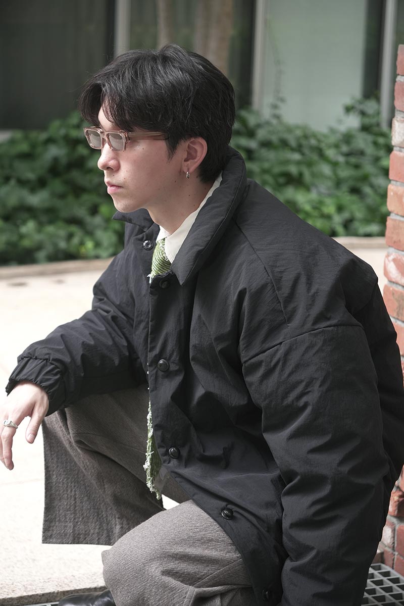 • 身幅、アームに余裕をもたせたボリュームのあるシルエット、着丈はスッキリとした短め。
