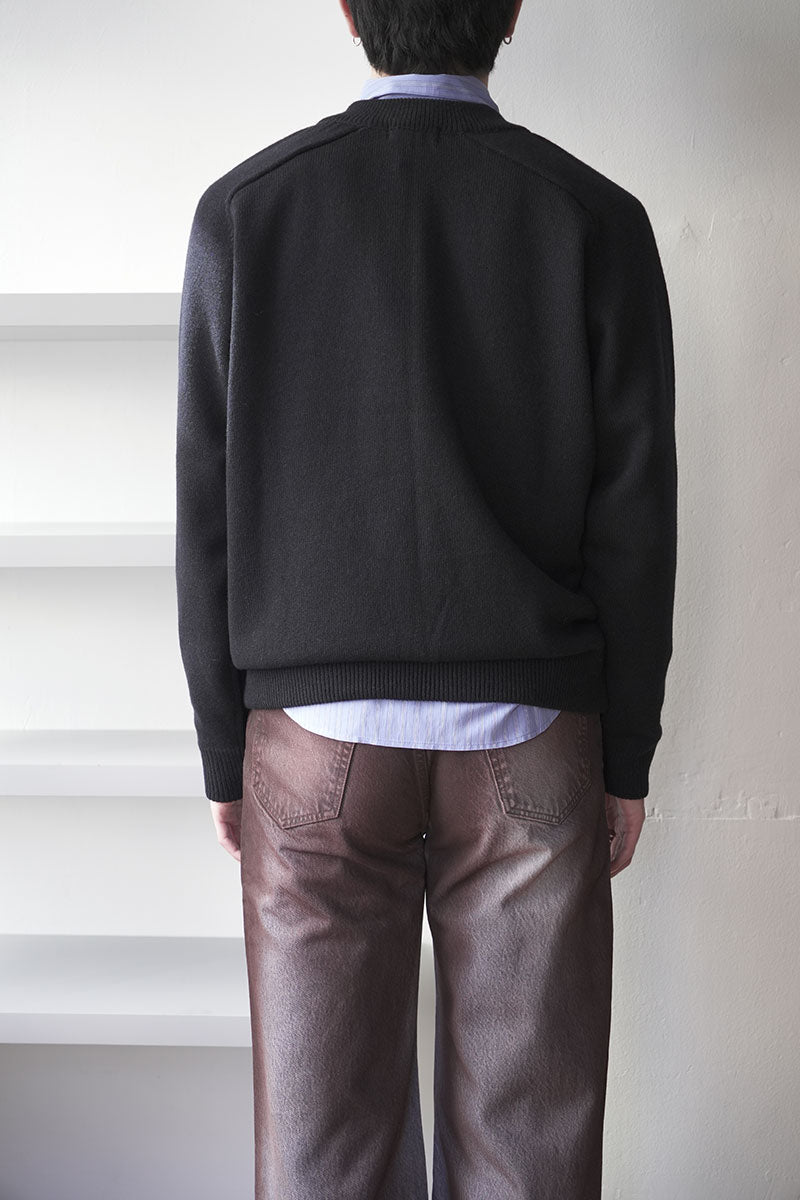 ZIP CREW NECK CARDIGAN LAMS WOOL PALIN KNITTED / NAVY