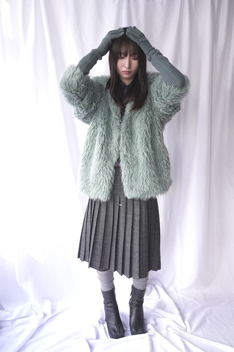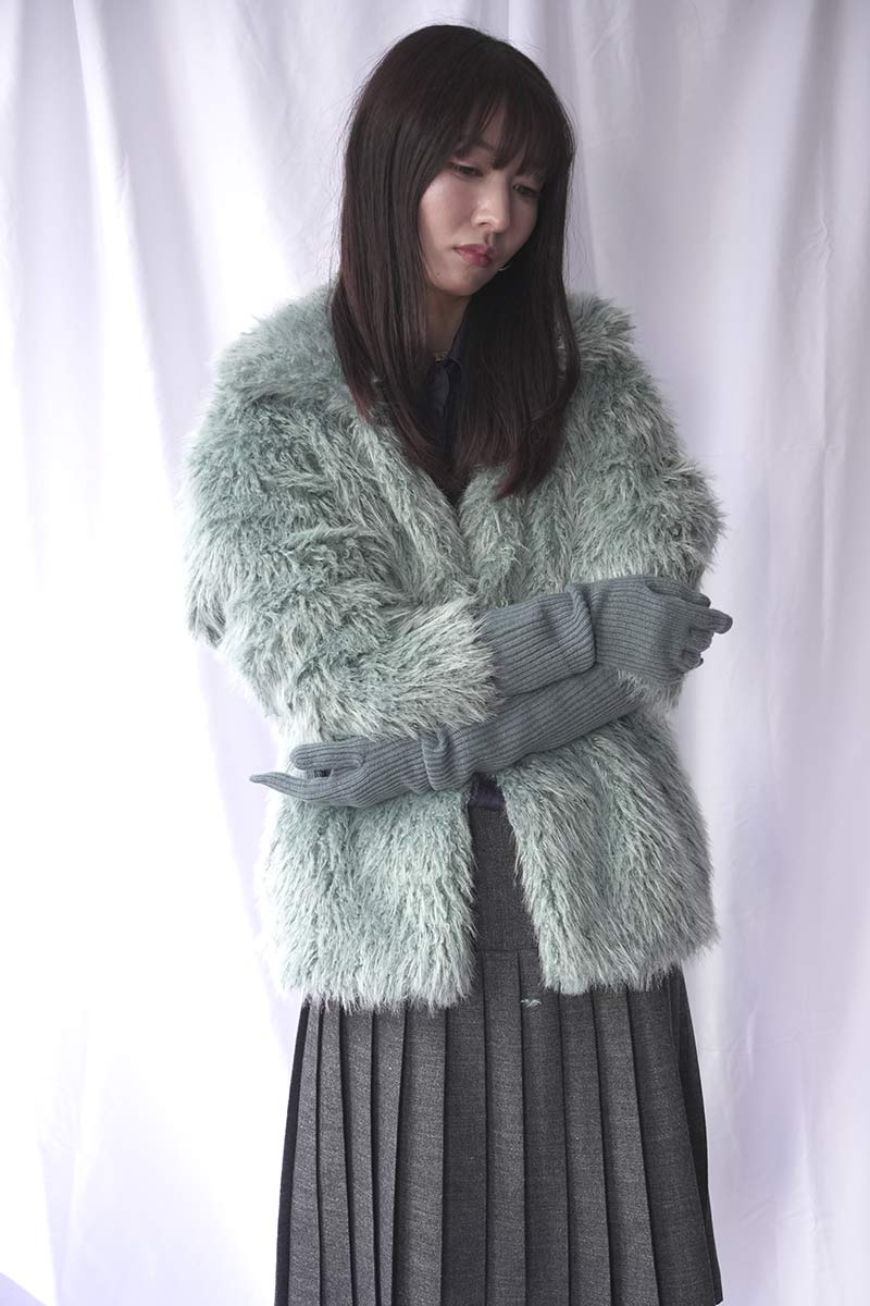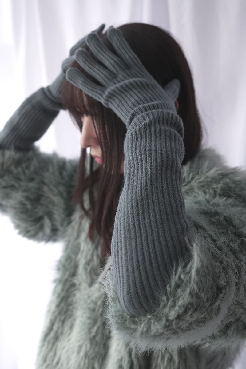 EXTRA FINE MERINO WOOL KNIT LONG GLOVES / BLUE GRAY