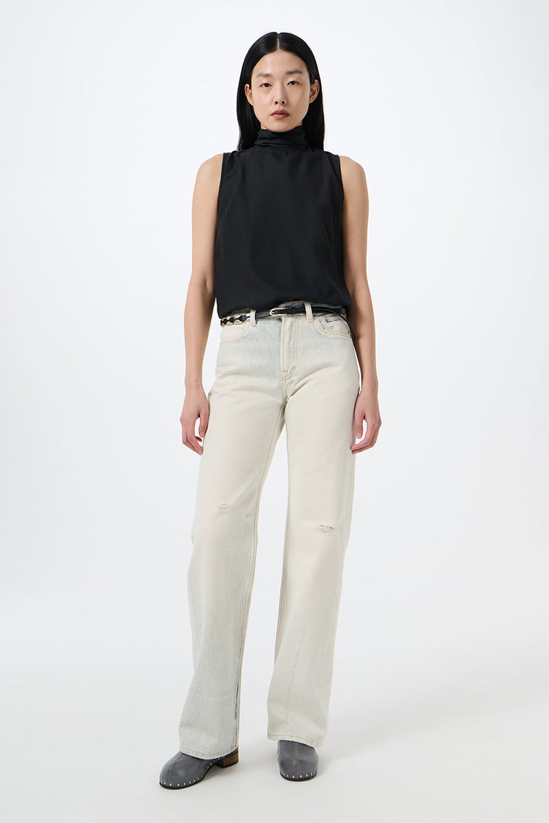 • 所々にアタリ感・ユーズド加工の施されたイタリア製コットンデニムは、織目の詰まったハリのある生地感。
