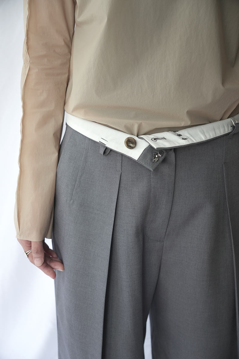 • 約8cmと驚くほど深いタックが施され、着用時に立体感や動きのあるシルエットを再現。