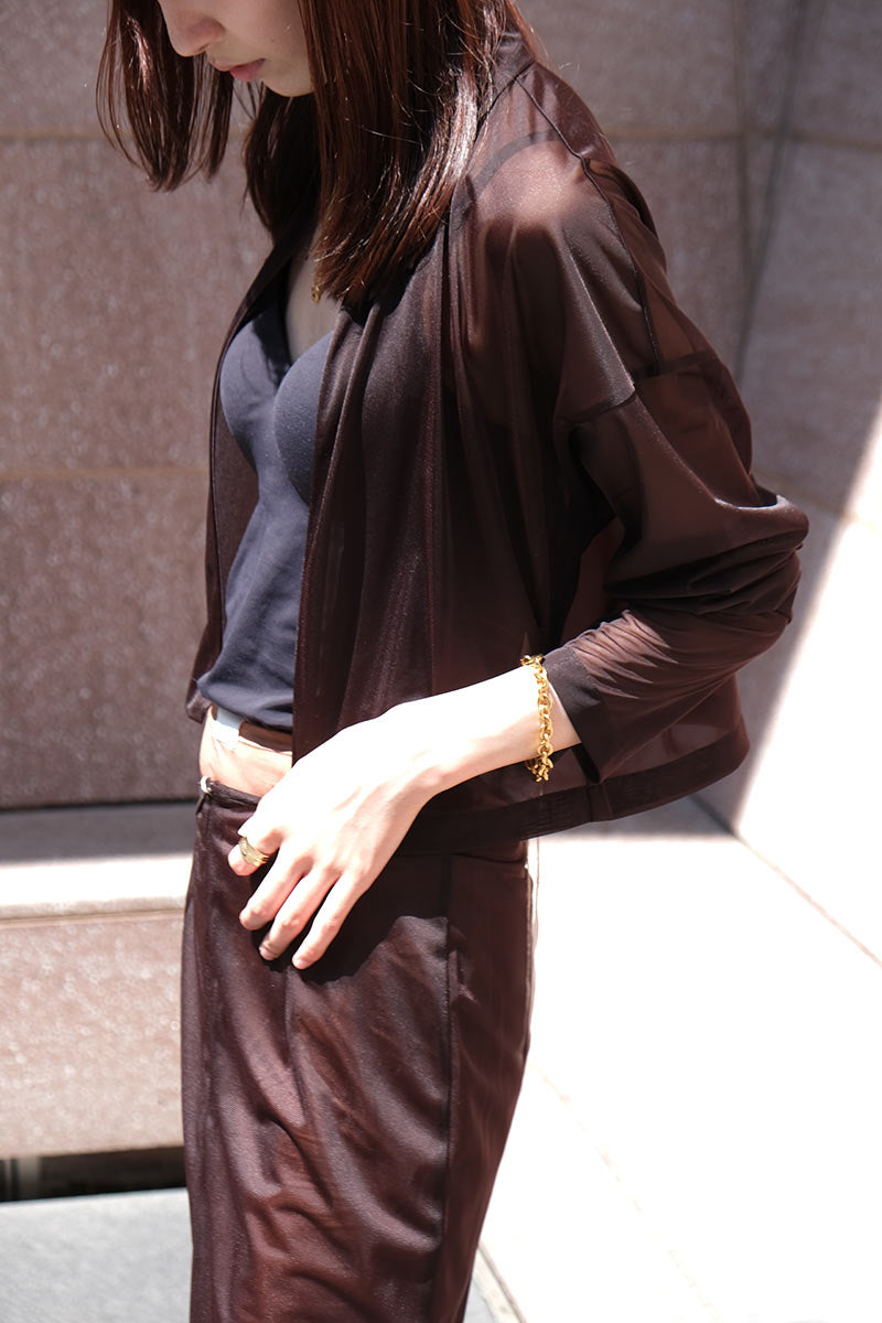 SHEER TRICOT FRONT ZIP JACKET / CHOCOLATE