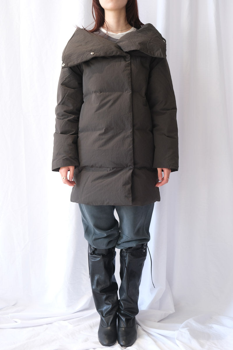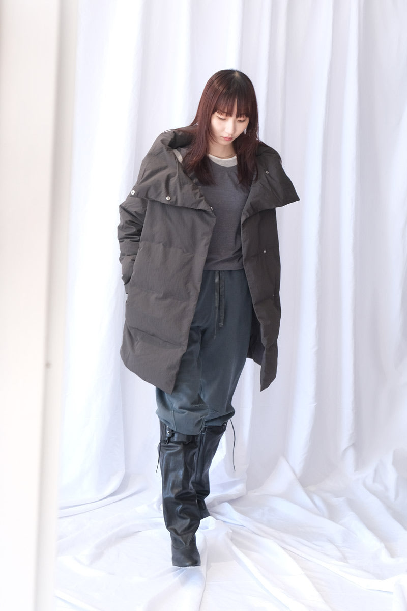 • 大胆なボリュームのあるシルエットが目を惹くダウンハーフコート。